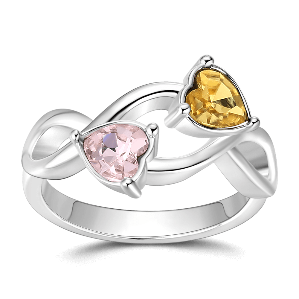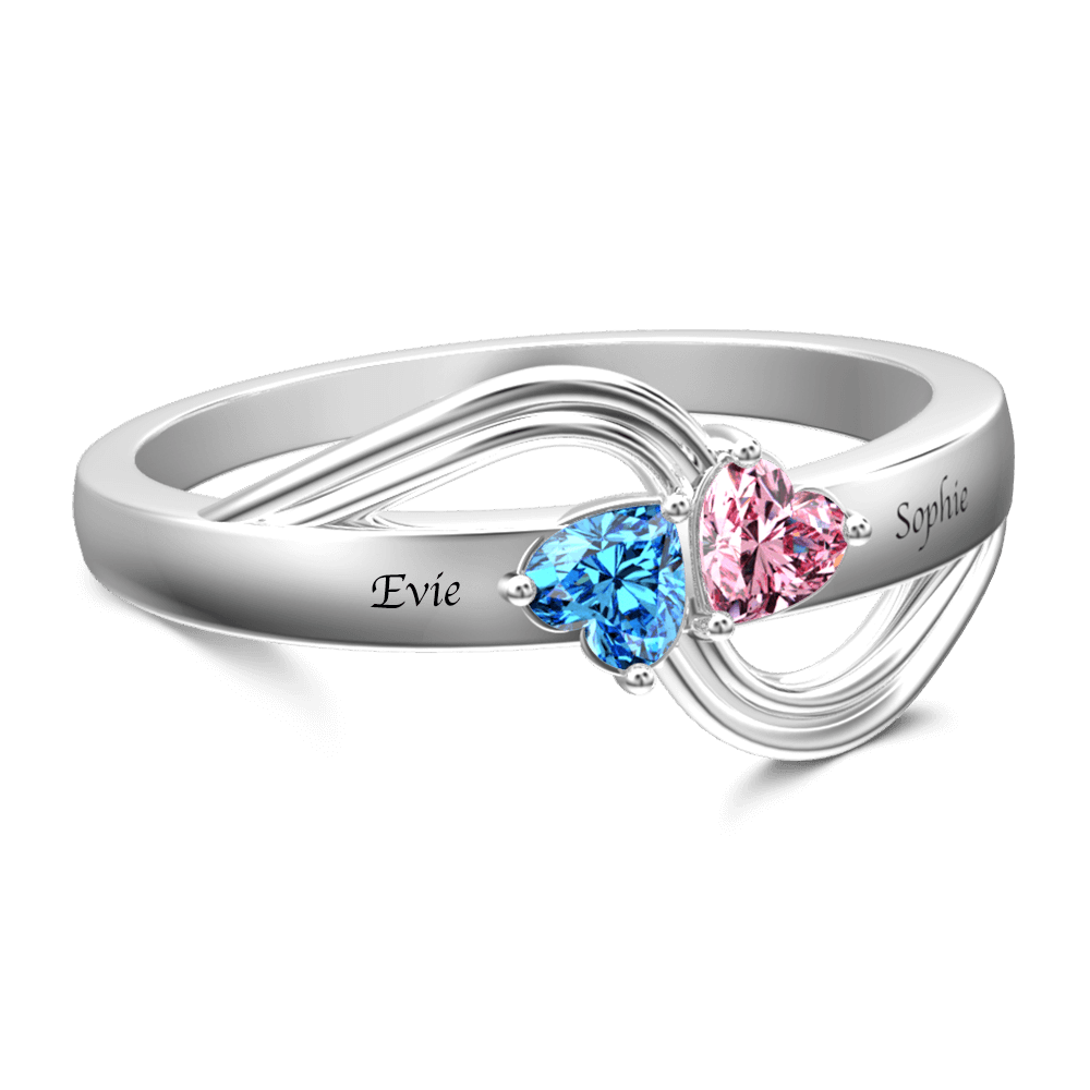 43% RabaisBague Avec Pierres De Naissance Personnalisées, Anneau Réglable À Double Cœur Ouvert, Cadeau Pour Elle -