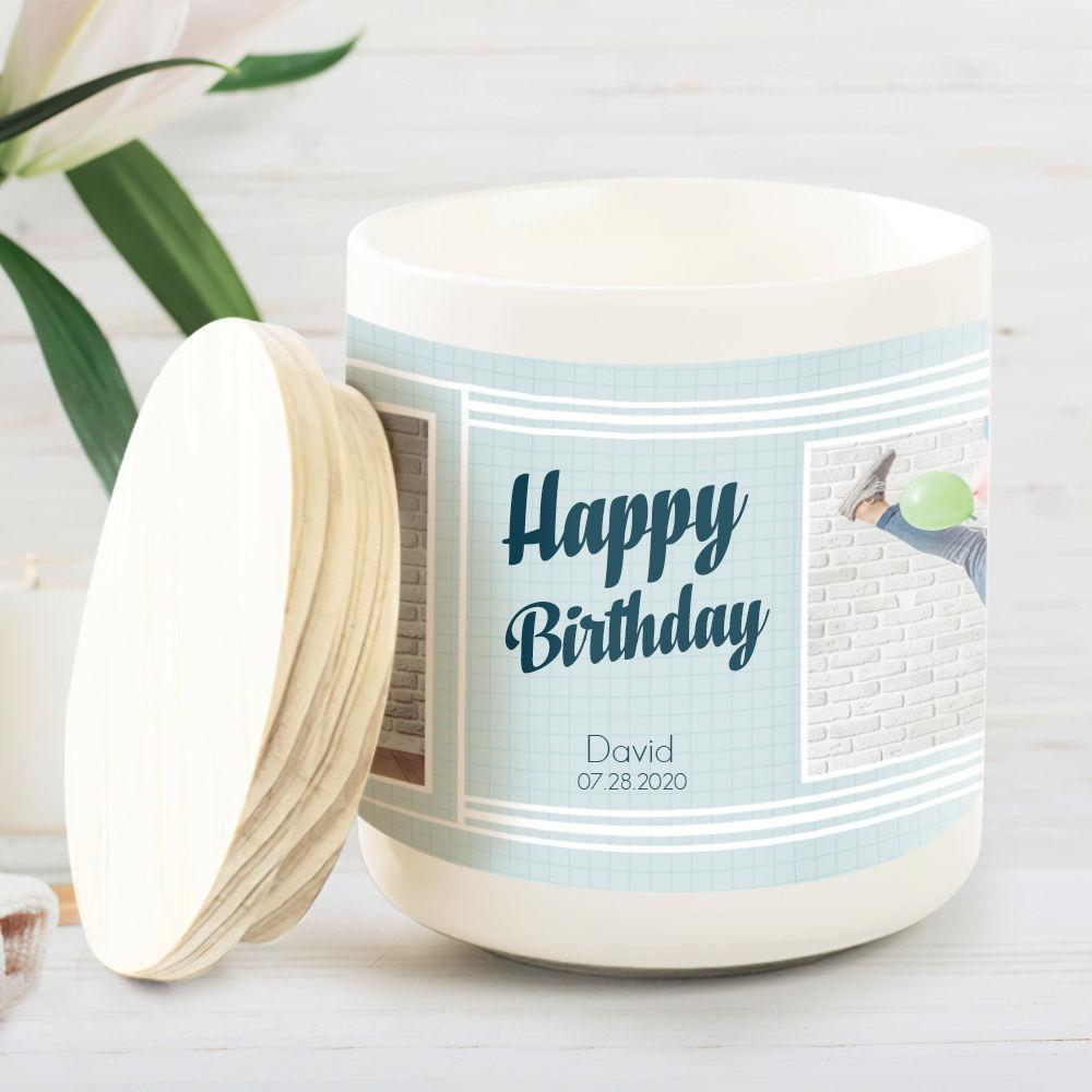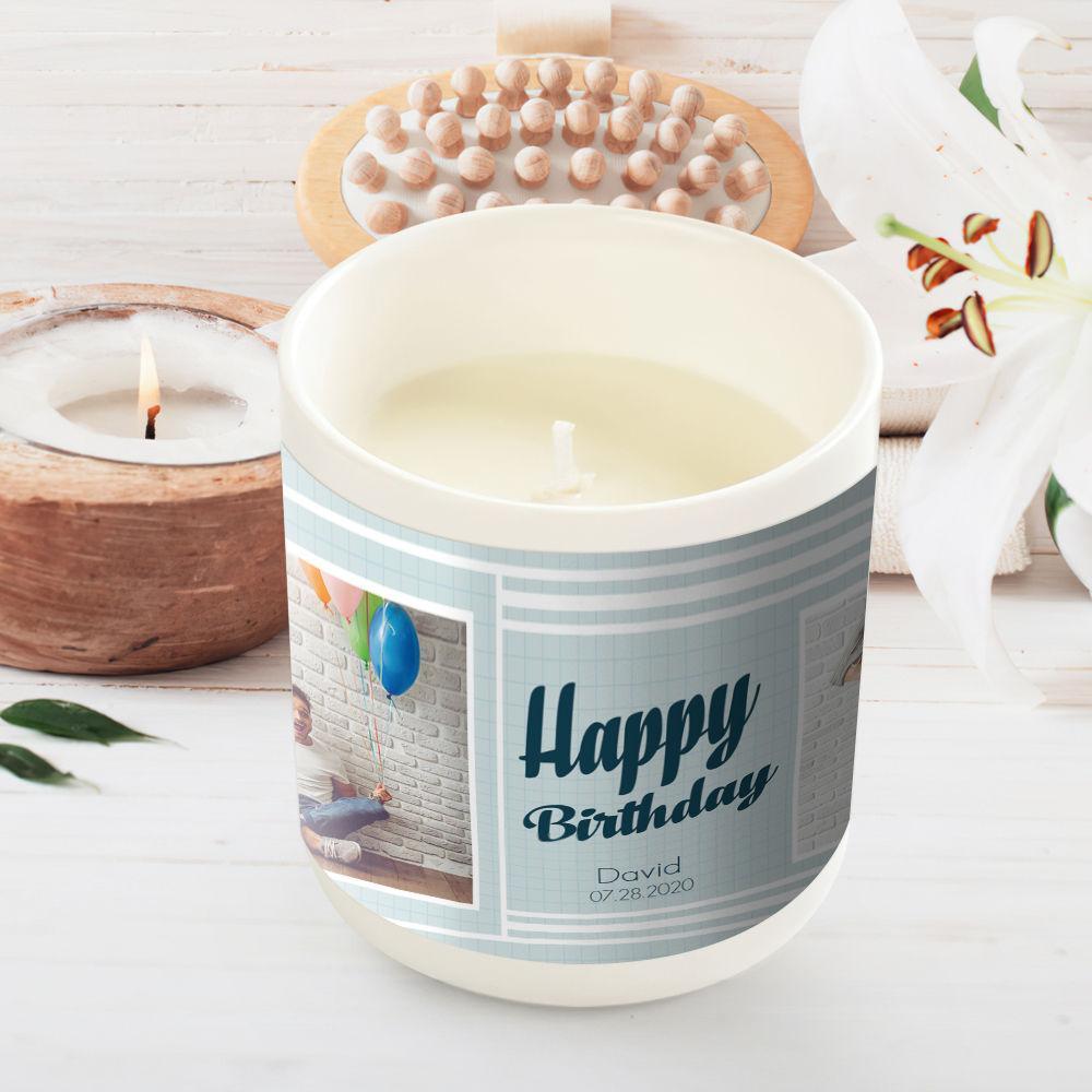 50% RabaisBougie Gravée à Plusieurs Photos Parfum De Campanule Bleue -