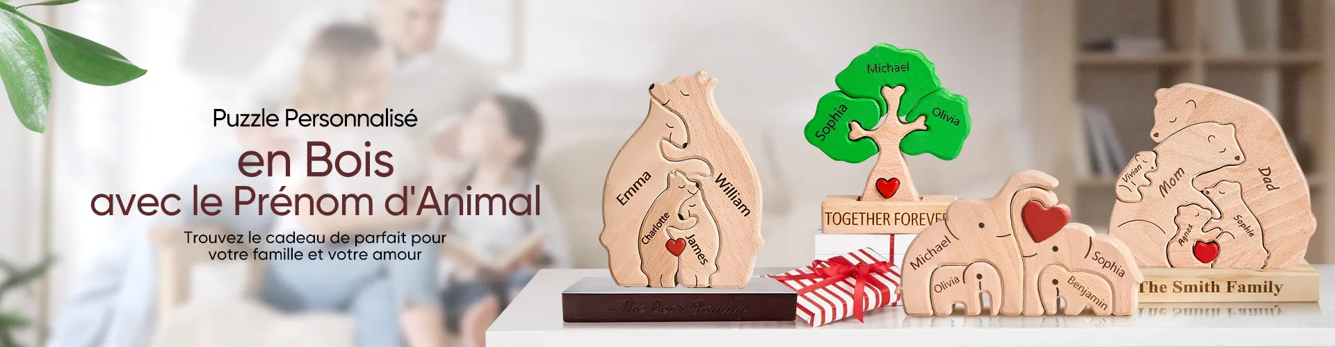 43% RabaisOurs Câlins En Bois Personnalisés, Puzzle Avec Noms De Membres De La Famille, Cadeaux De Décoration Pour La Maison -