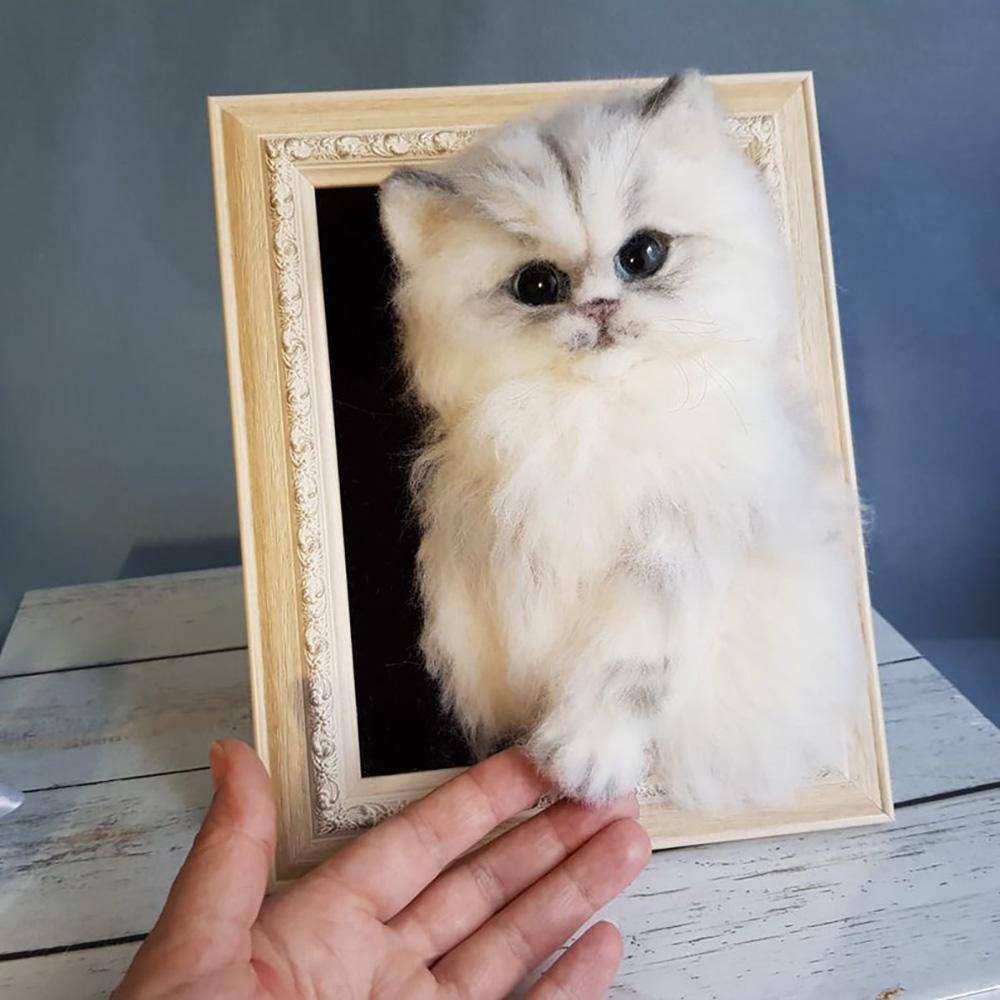 50% RabaisCadre Réaliste De Chat De Feutrage D'aiguille, Cadeau Commémoratif D'animal Familier De Cadre De Chat De Feutrage Personnalisé -