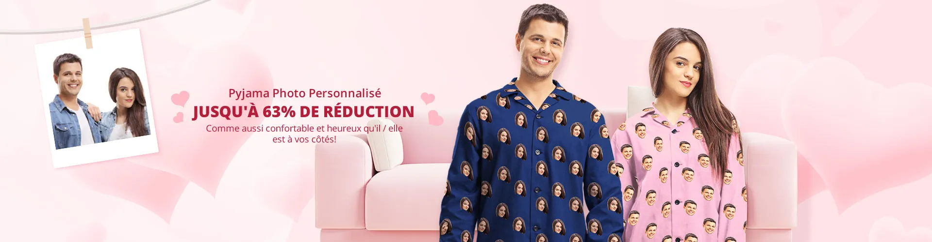 50% RabaisChemises De Pyjama Coloré En Visage Personnalisé Avec Coeur -
