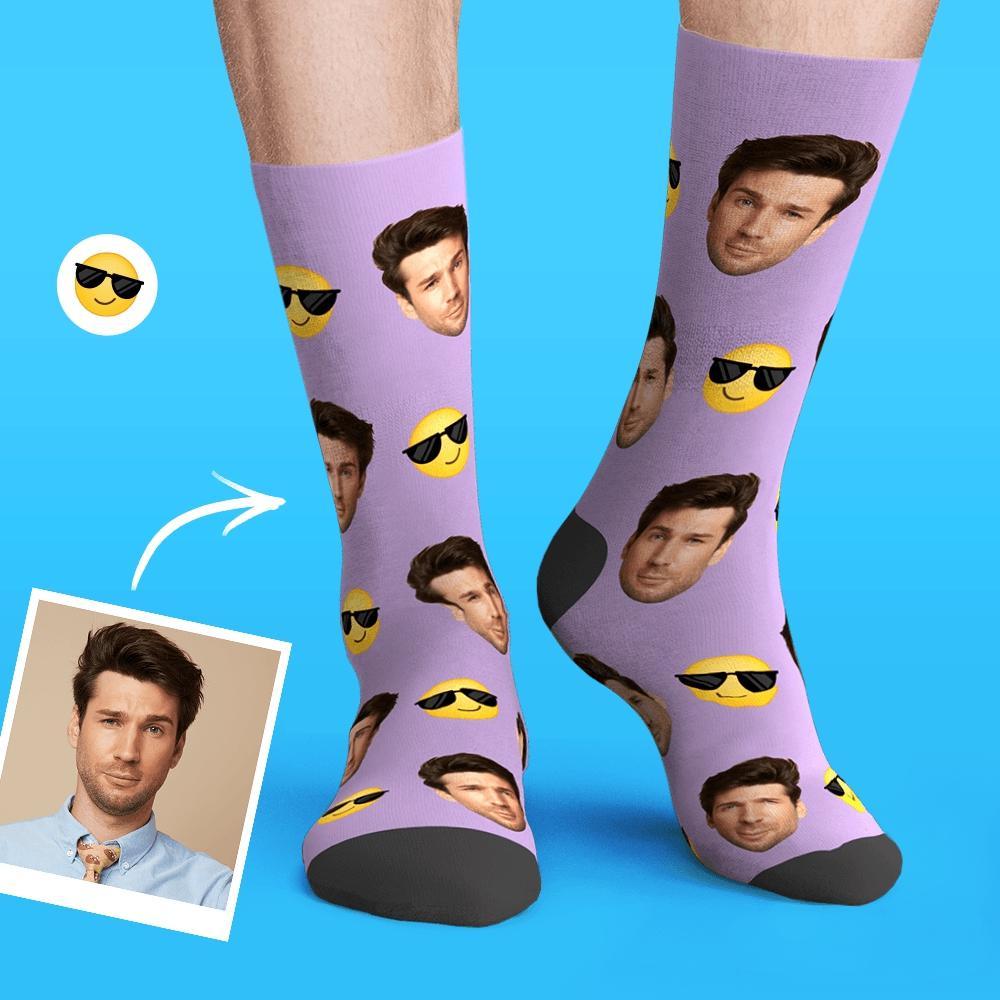 79% RabaisPersonnalisé Personnalisé Photo Dr?le émotic?nes Visage Chaussettes-lunettes De Soleil -