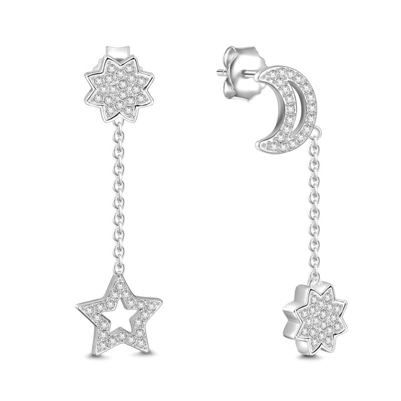 60% RabaisBoucles D'oreilles étoile Alternées Avec Lune En Argent -