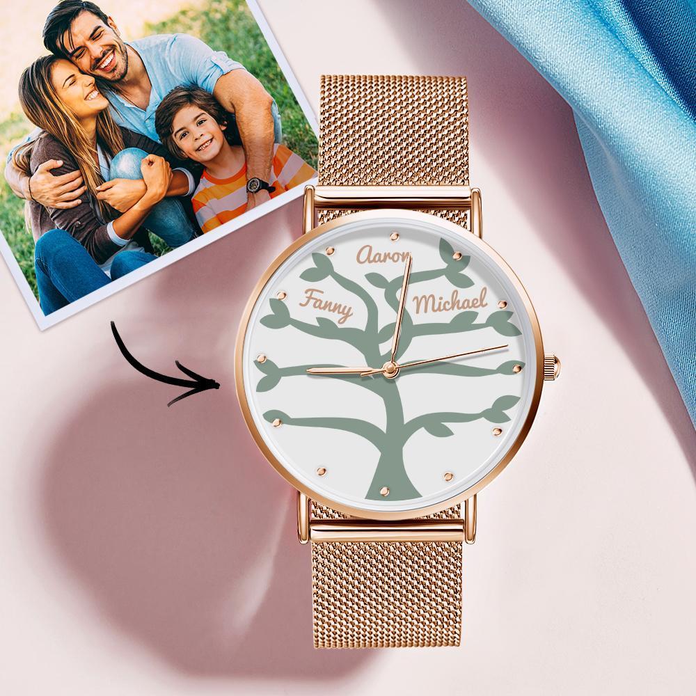 48% RabaisMontre Nom Personnalisée Montre Bracelet En Alliage D'or Rose Pour Femme 36mm Pour Grands Cadeaux De Famille (1-9 Noms) -