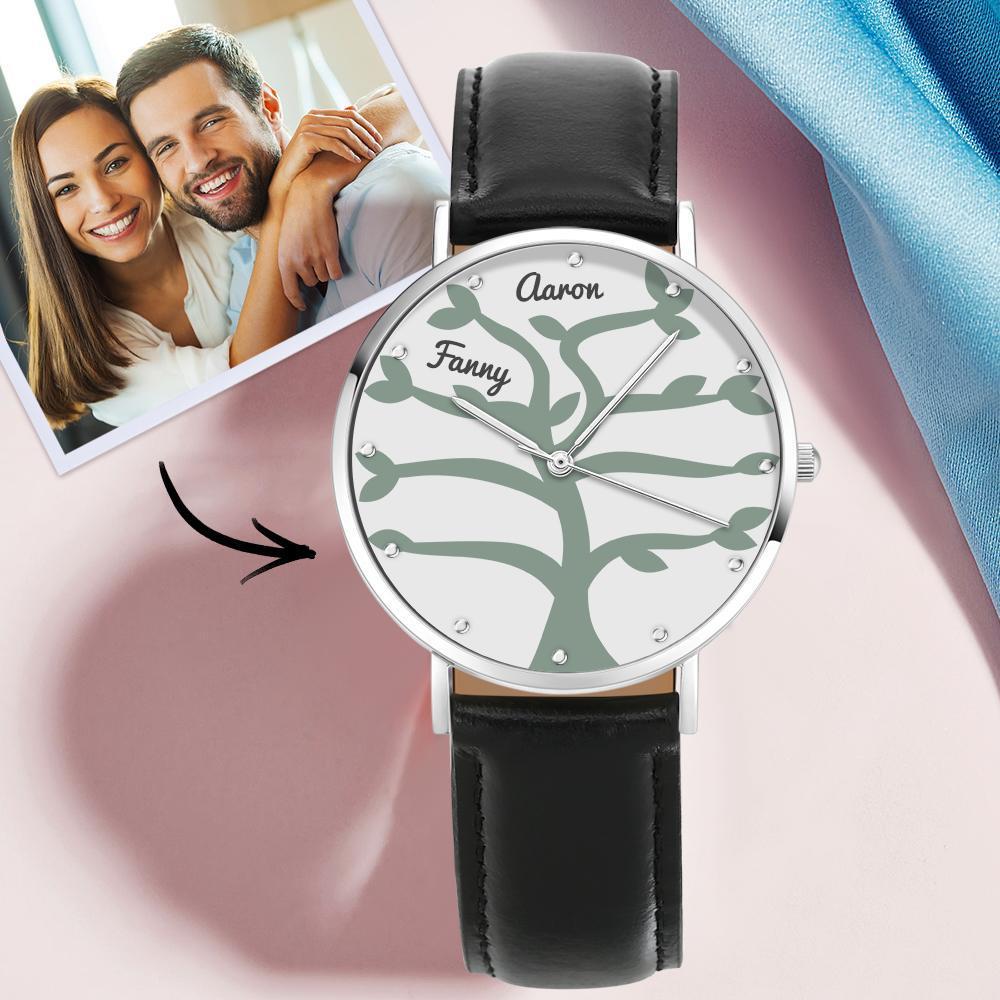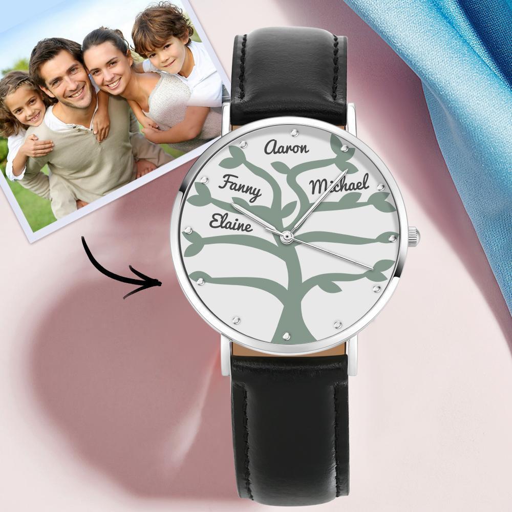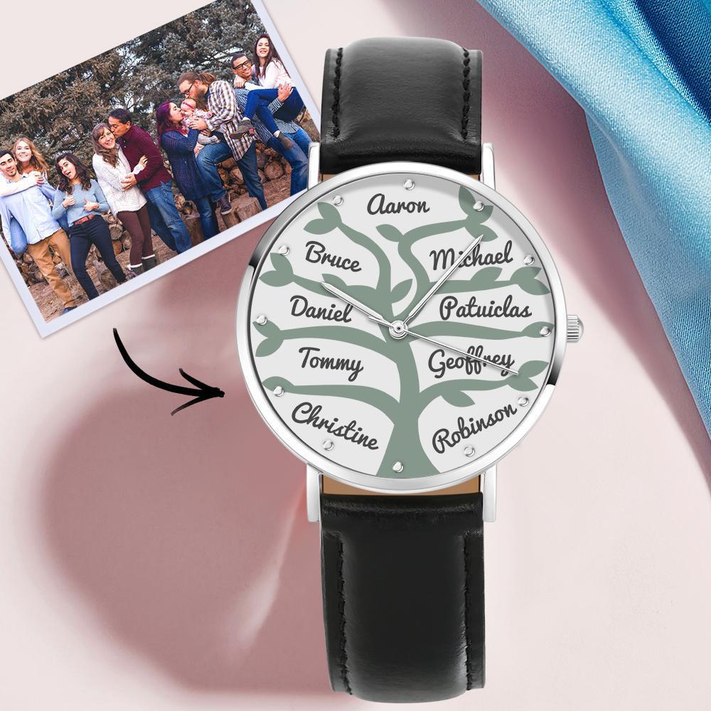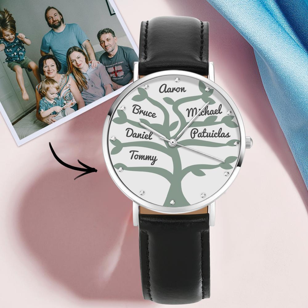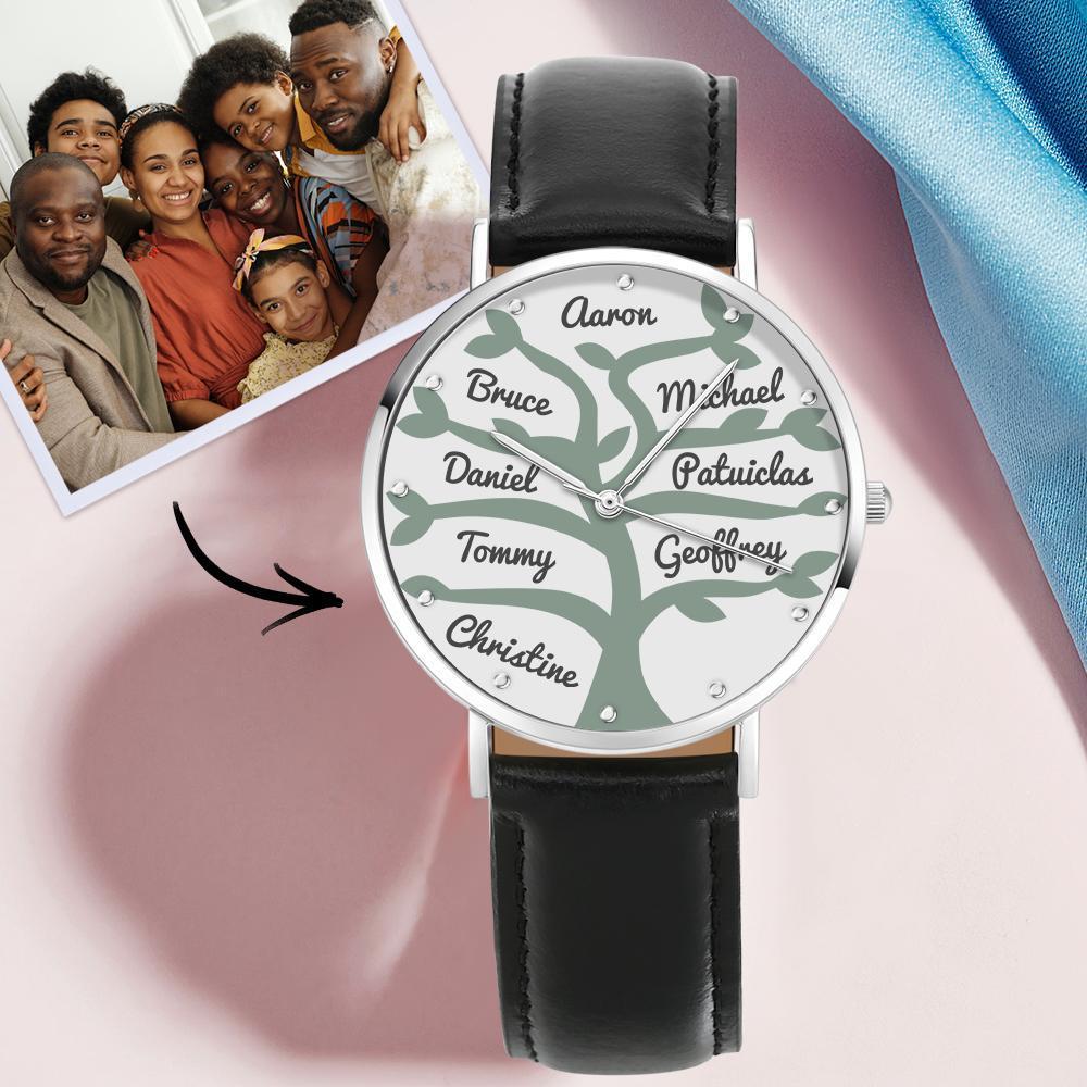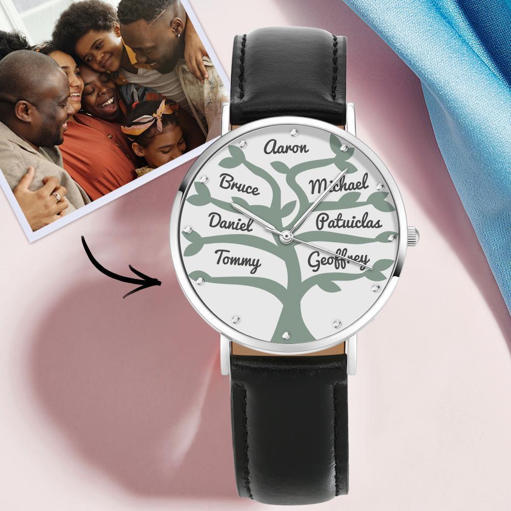 48% RabaisMontre Nom Personnalisée Bracelet En Cuir Noir 40 Mm Pour La Famille (1-9 Noms) -