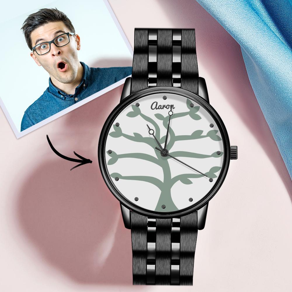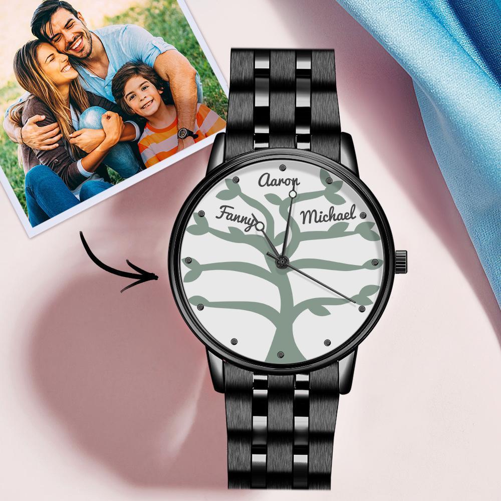 50% RabaisMontre De Nom Personnalisé Montre Bracelet En Alliage Noir Pour Homme 38mm Meilleurs Cadeaux D'amis (1-9 Noms) -