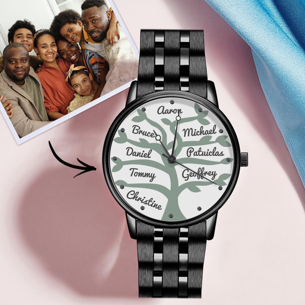48% RabaisMontre Nom Personnalisée Bracelet En Cuir Noir 40 Mm Pour Les Grands Cadeaux De Famille (1-9 Noms) -