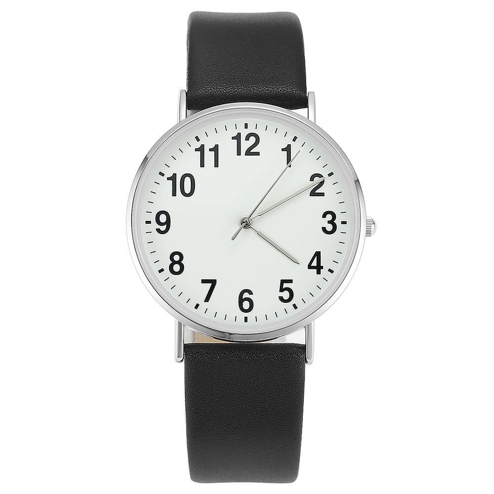 73% RabaisMontre à Cadran Décontracté Avec Bracelet En Cuir Noir Et Quartz - Femmes -