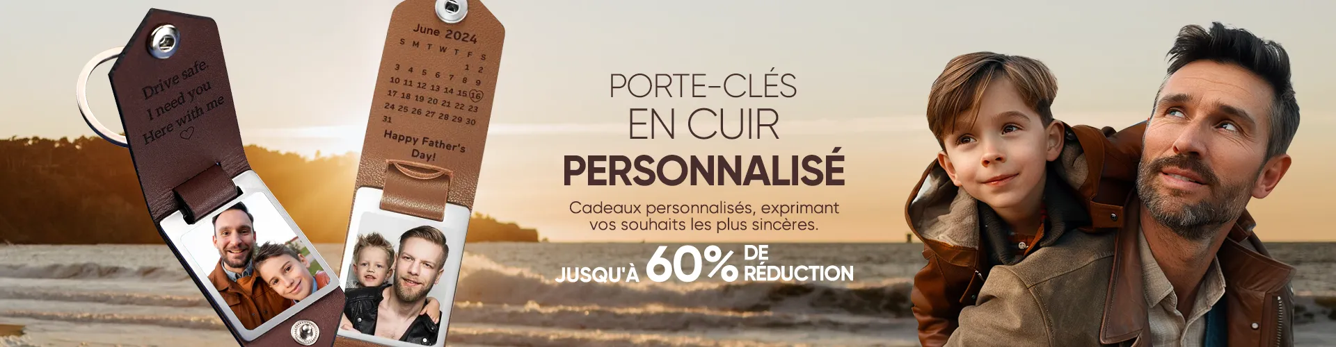 48% RabaisCadeaux En Cuir Porte-clés Photo Personnalisés Pour Père -