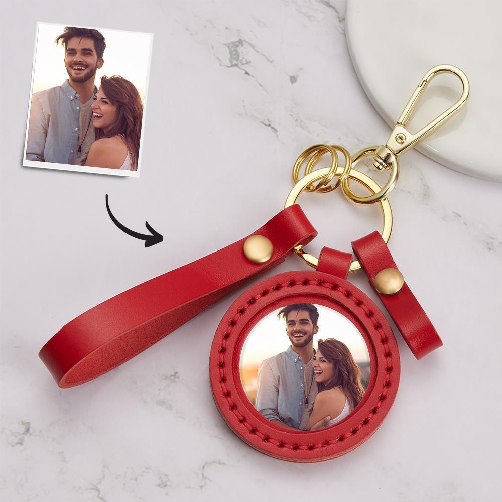 50% RabaisPhoto Porte-clés Photo Colorée Cadeaux De Couple Design Unique Avec Cuir Rouge -