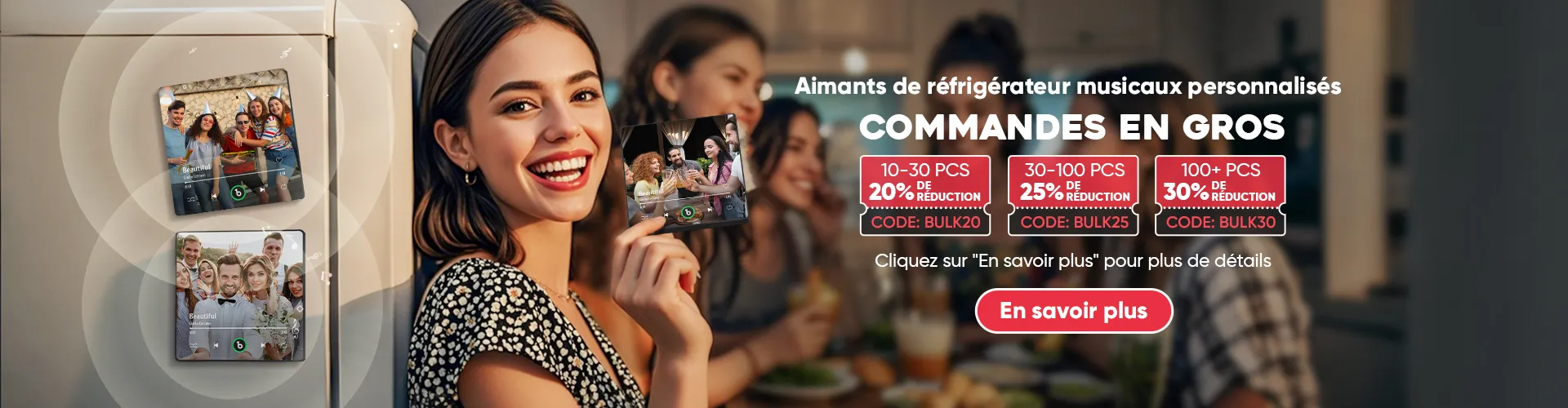 33% RabaisAimant De Réfrigérateur Avec Musique Et Photos Personnalisées, Nouvelle Mise À Niveau 5.0, Peut Lire Des Chansons Et Régler Le Volume, Prend En Charge 1 À 6 Chansons, Cadeaux De La Saint-valentin -