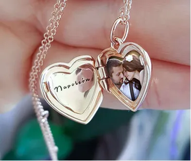 52% RabaisCollier Médaillon Photo Gravable Coeur Ange Ailes Cadeaux Couple Plaqué Or Argent -