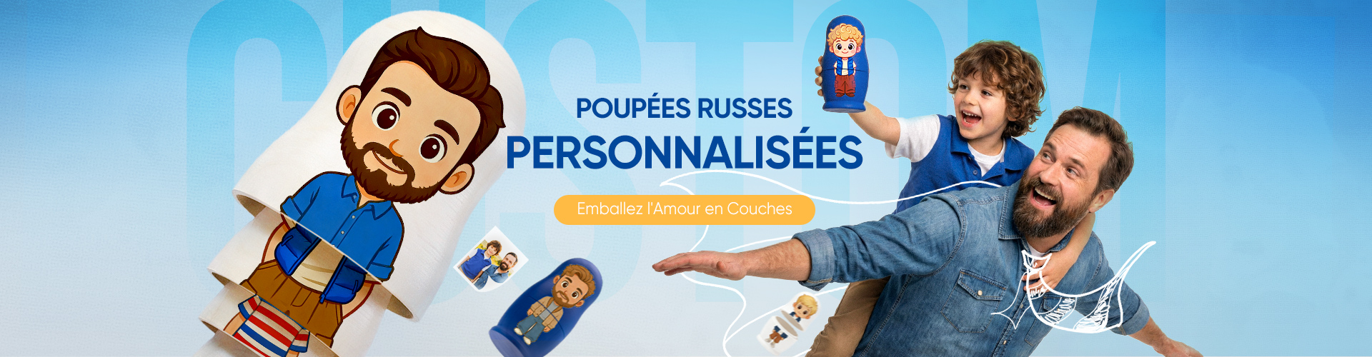 Poupée Gigogne Personnalisée Photo Portrait de Famille en Style Dessin Animé Cadeau d'anniversaire Cadeau d'Anniversaire -