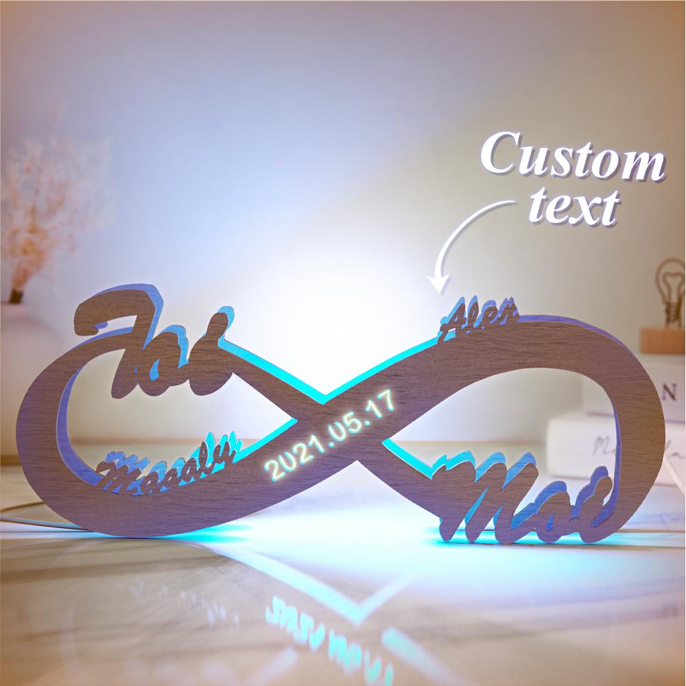 55% RabaisAmour Cadeau Lampe Veilleuse Bois Gravé Personnalisée Nom Personnalisé Lumière Infini -