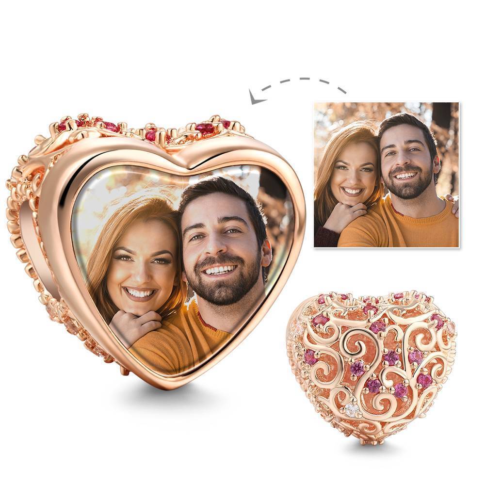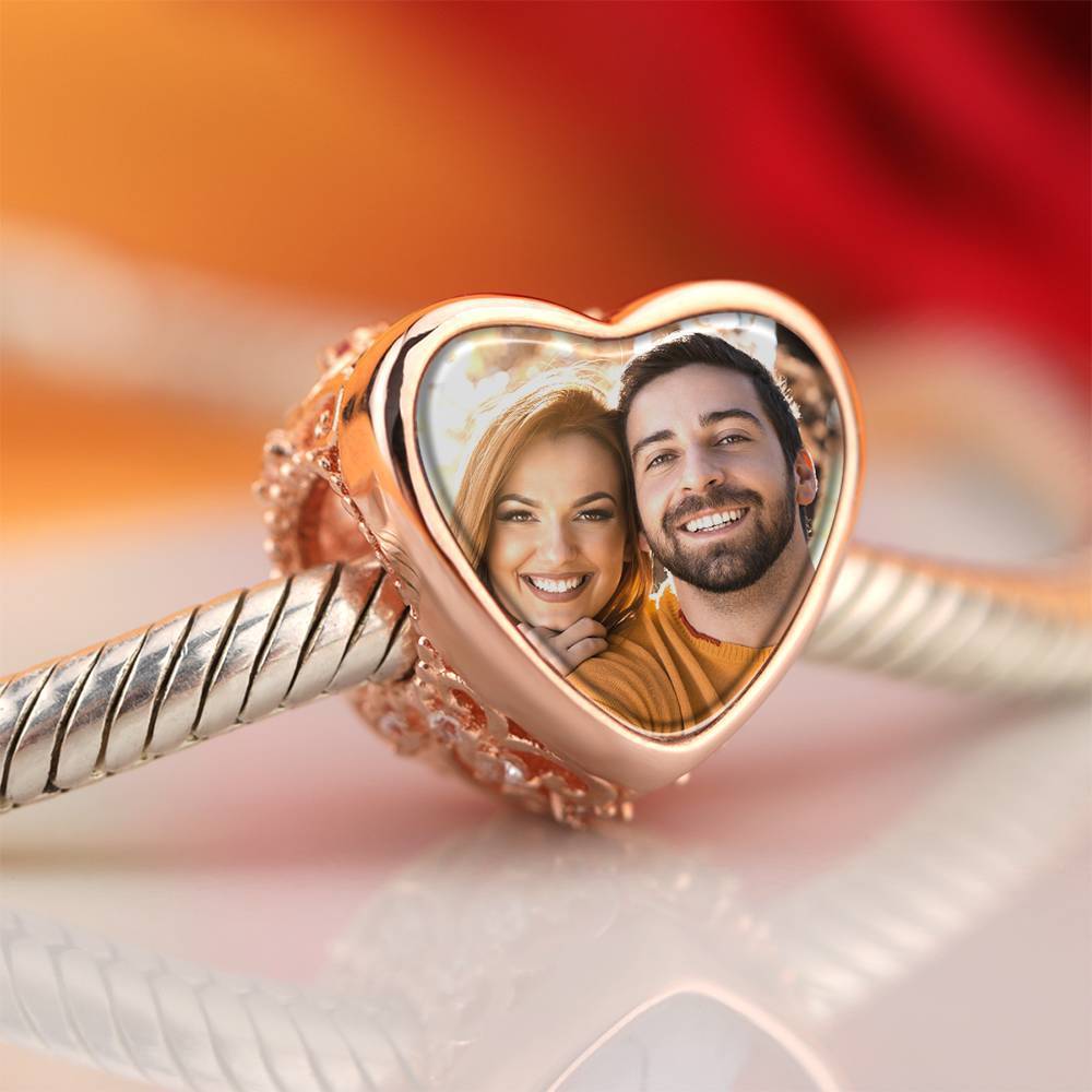 50% RabaisBreloque Photo Personnalisée En Forme De Cœur, Compatible Avec Toutes Les Grandes Marques De Bracelets Et De Colliers. -