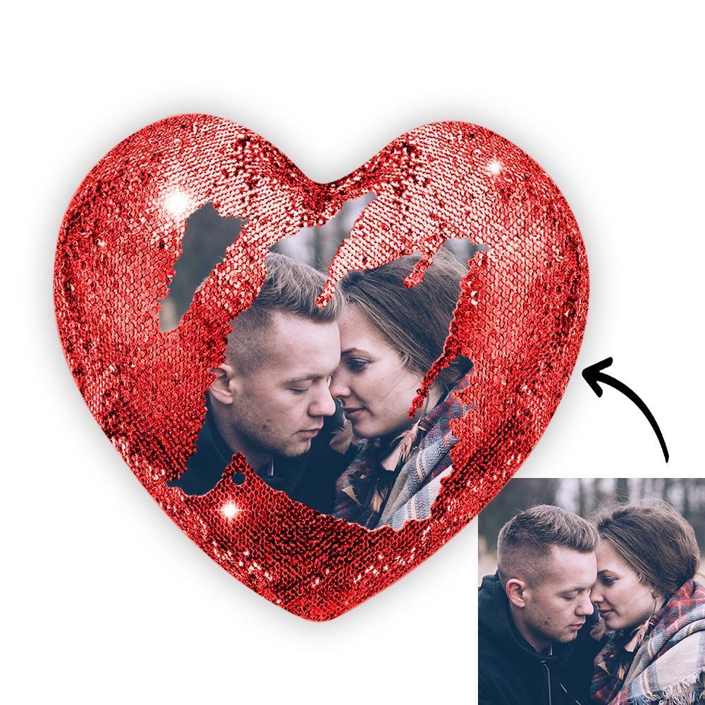 50% RabaisOreiller De Paillettes Magique Photo Personnalisé Coeur Rouge -