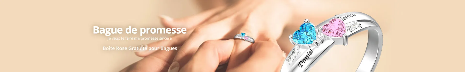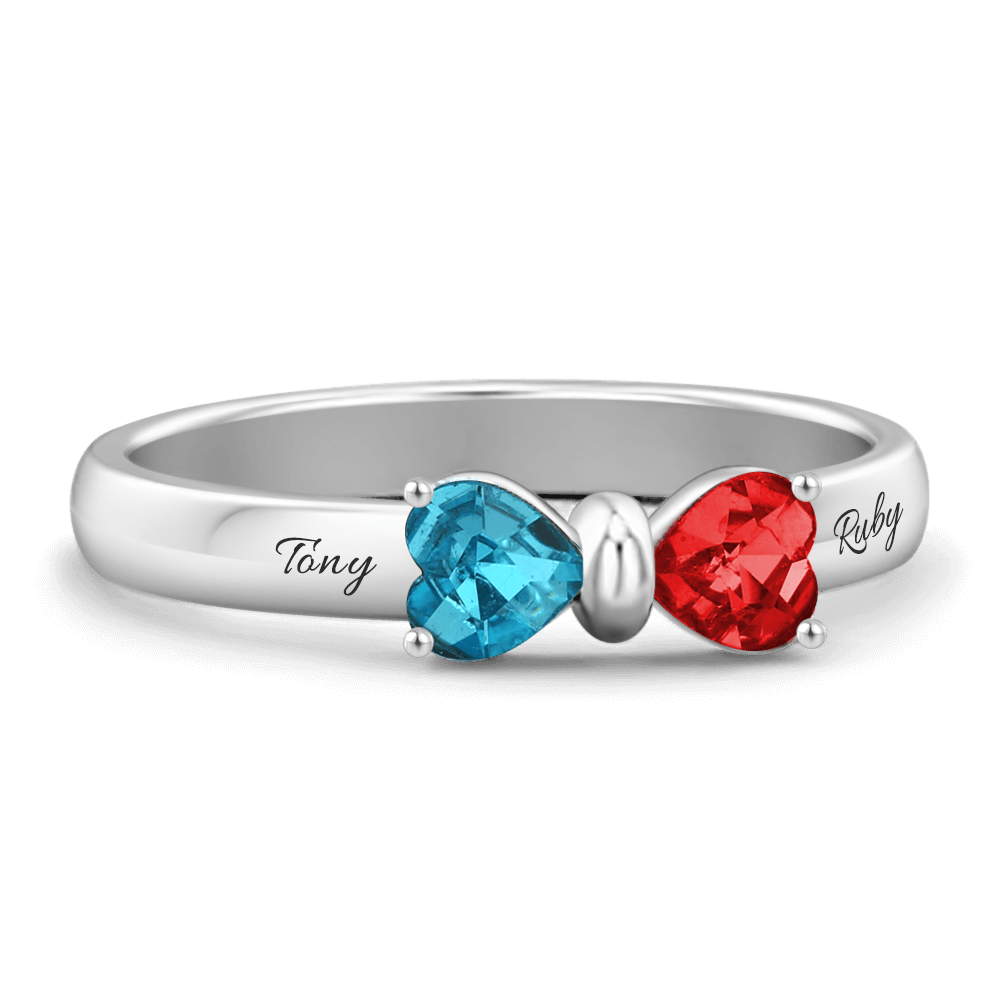 50% RabaisPierre de Naissance Personnalisée avec Gravure Bague Promesse Double Coeur Argent -