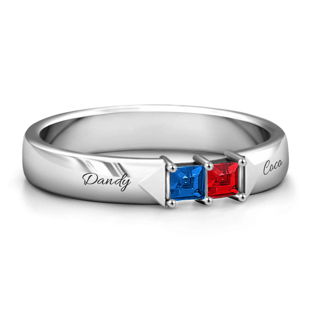 50% RabaisBague Gravée Avec Deux Pierres De Naissance Argent -