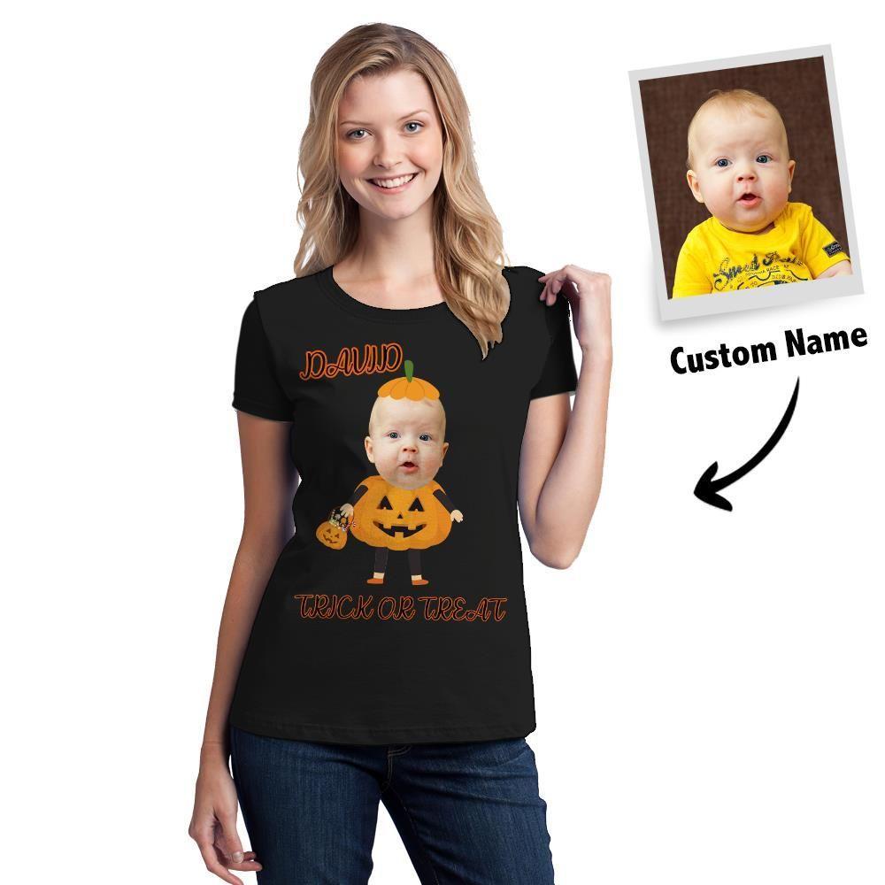 48% RabaisT-shirt De Visage Personnalisé Cadeaux T-shirt De Nom De Photo Avec Des Femmes Mignonnes De Citrouille -