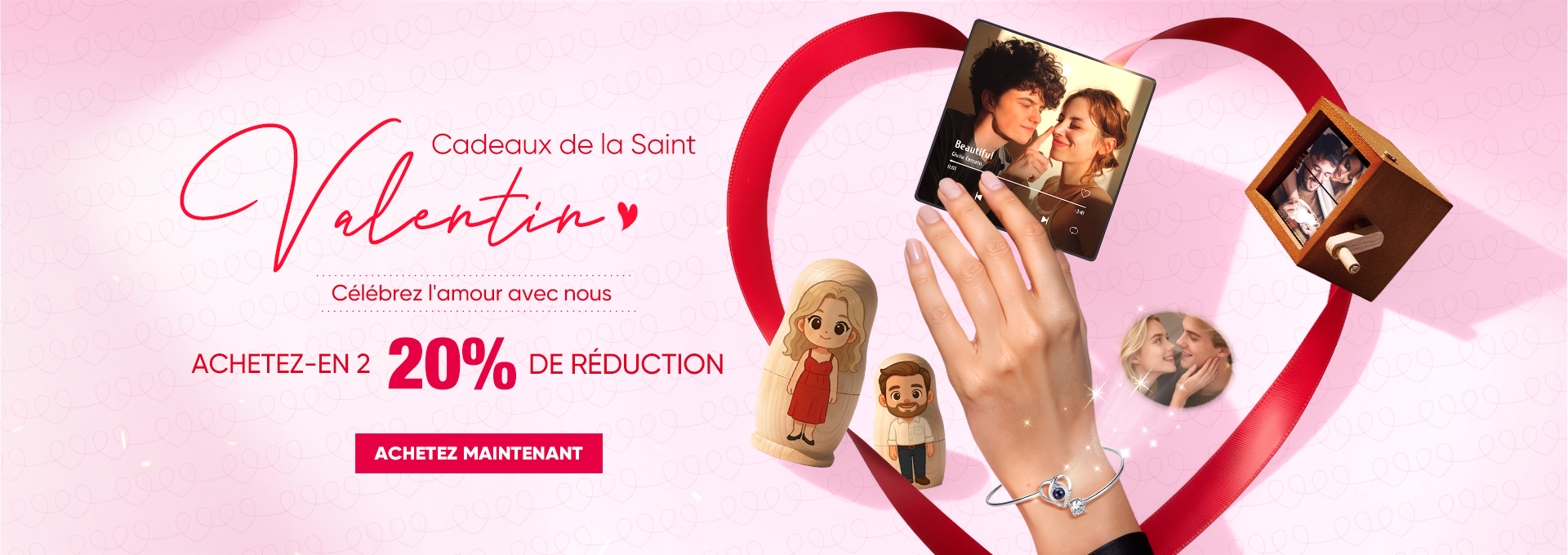 Pour la Saint-Valentin, exprimez votre amour avec un cadeau personnalisé Soufeel. Découvrez notre collection de bijoux sur mesure, de décoration pour la maison et d’accessoires. Trouvez la pièce idéale pour symboliser votre lien unique.