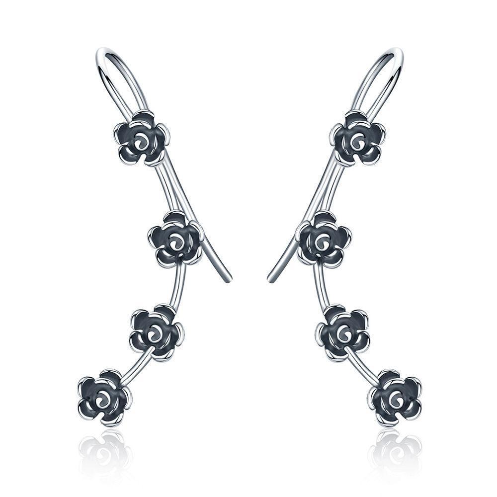 48% OFFBoucles D'oreilles Pendantes Fleurs Noires Argent -