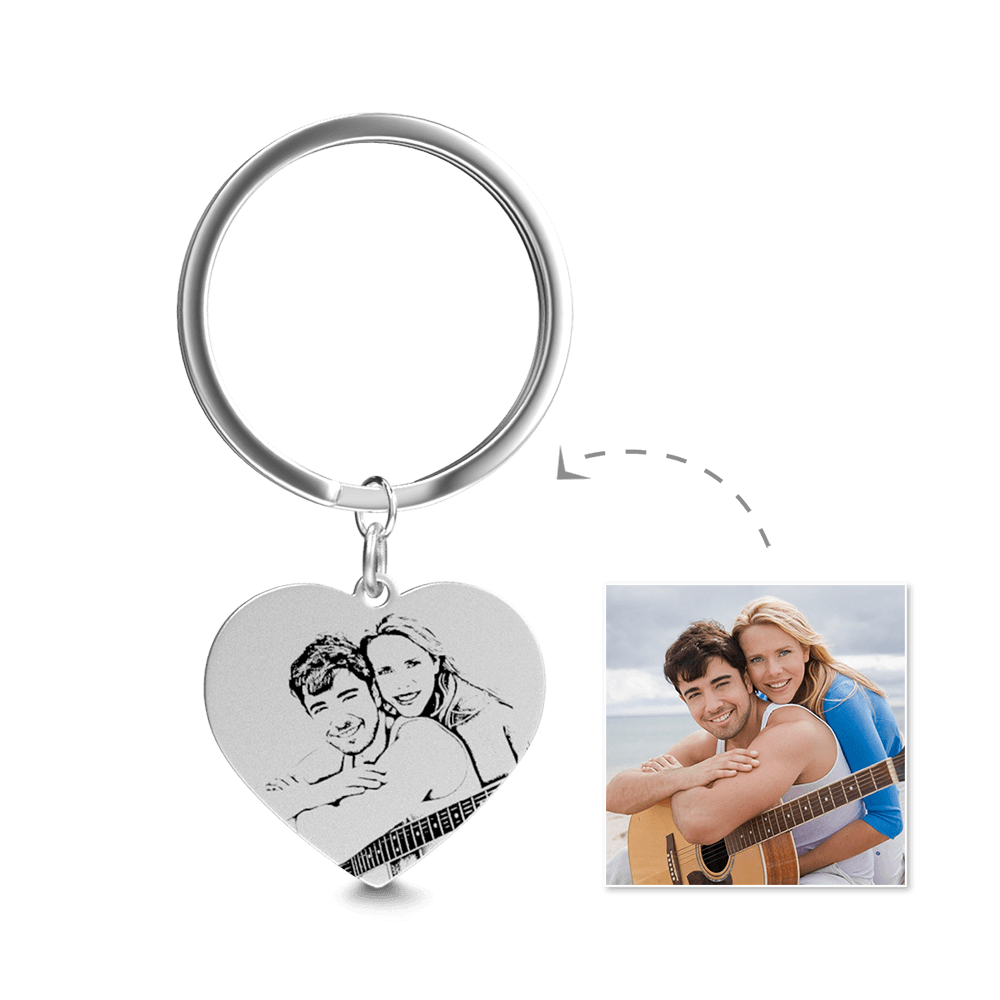 50% OFFPorte-clés Tag Photo Gravé Coeur En Acier Inoxydable -
