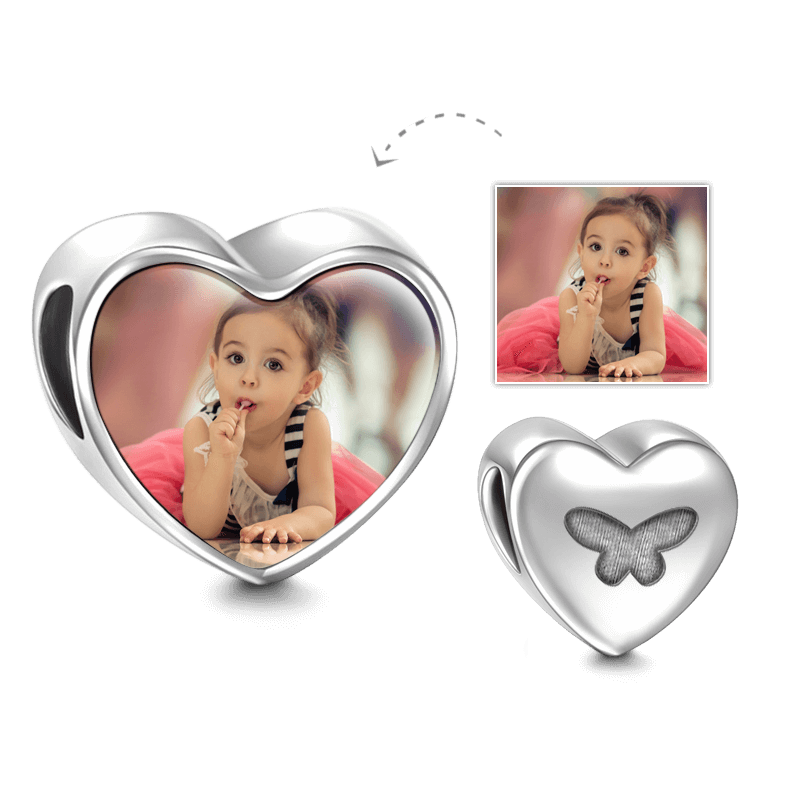 50% OFFPhoto Charm Coeur Avec Papillon En Argent -