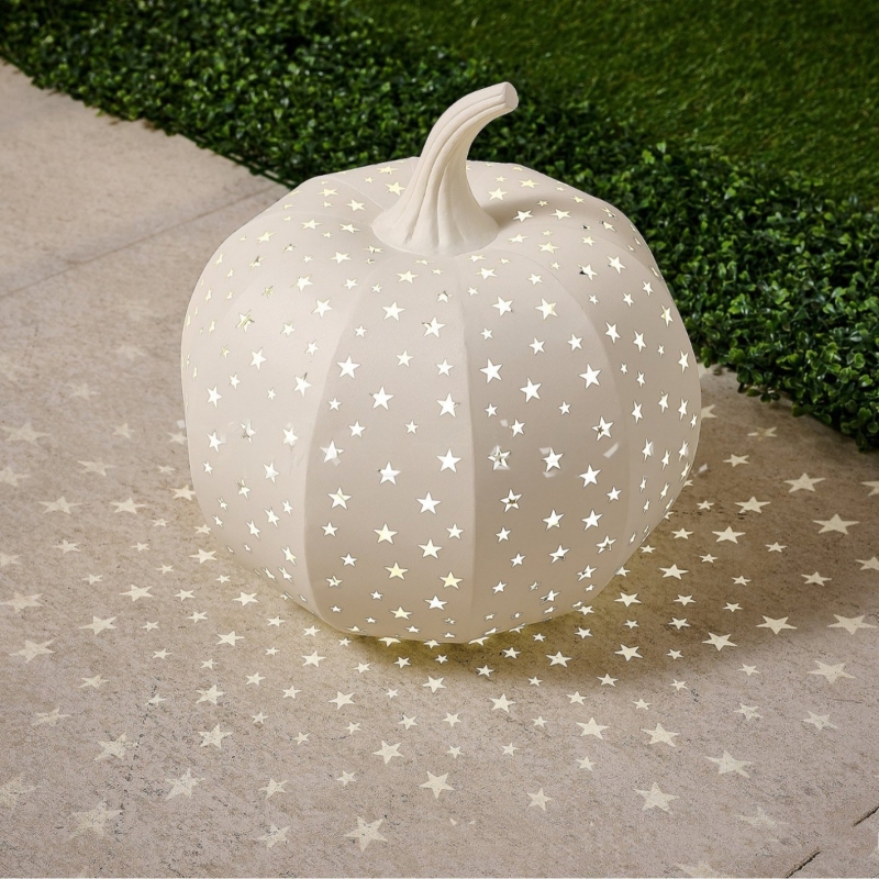 Découvrez la citrouille illuminée en métal Stargazer, idéale pour l'intérieur et l'extérieur : une pièce maîtresse enchanteresse en toute saison pour votre maison ou votre jardin. Fabriquée à la main, cette citrouille en métal arbore une silhouette inspirée de Stargazer et diffuse une lumière chaleureuse et ambiante grâce à son design perforé. Parfaite pour une utilisation intérieure comme extérieure, elle apporte une touche de fantaisie aux porches, terrasses, salles à manger ou entrées.