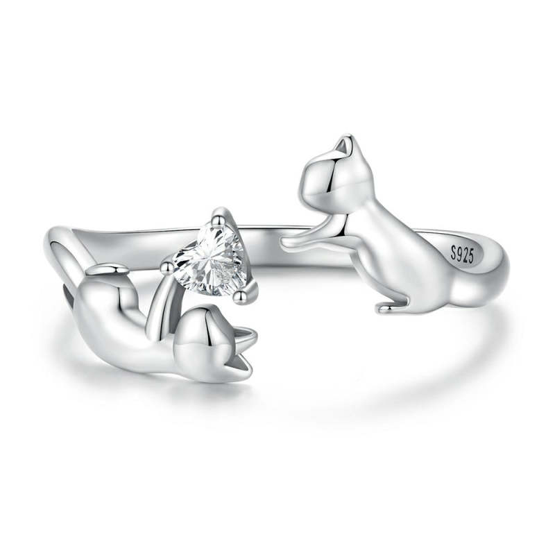 Chat Jouant Bague Ouverte Argent