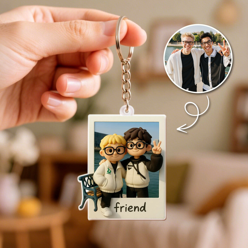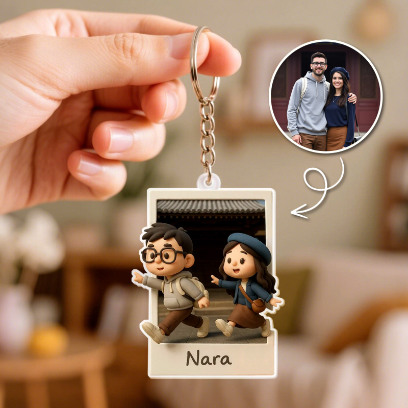 Cet adorable porte-clés allie le charme des personnages 3D de style argile à un design plat astucieux. Bien que physiquement plat, le dessin détaillé crée un effet 3D réaliste, donnant l'impression que la petite figurine chibi est sur le point de sortir du placard !