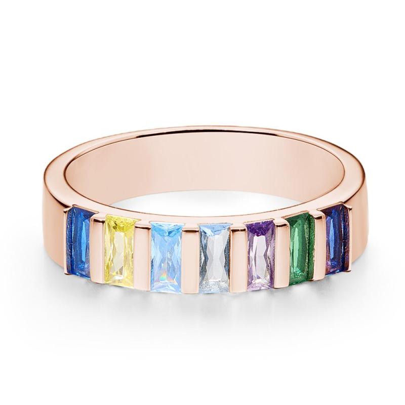Baguette Personnalisée Avec Pierre De Naissance, Plaquée Or Rose, Bague Familiale Personnalisée, Cadeau Pour Elle