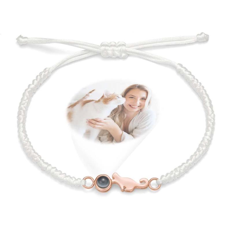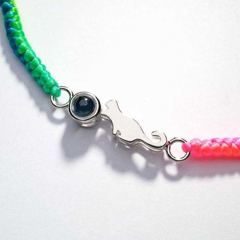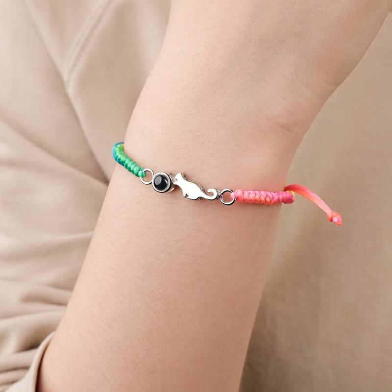 Ce bracelet à projection de chat conçu sur mesure offre une façon unique d'afficher une photo bien-aimée. Choisissez parmi une variété de combinaisons de métaux et de perles pour trouver le look qui convient à tout amateur de chats. Le cadeau parfait pour montrer de l'affection lors de fêtes spéciales ou simplement pour montrer à quelqu'un que vous tenez