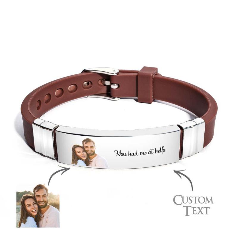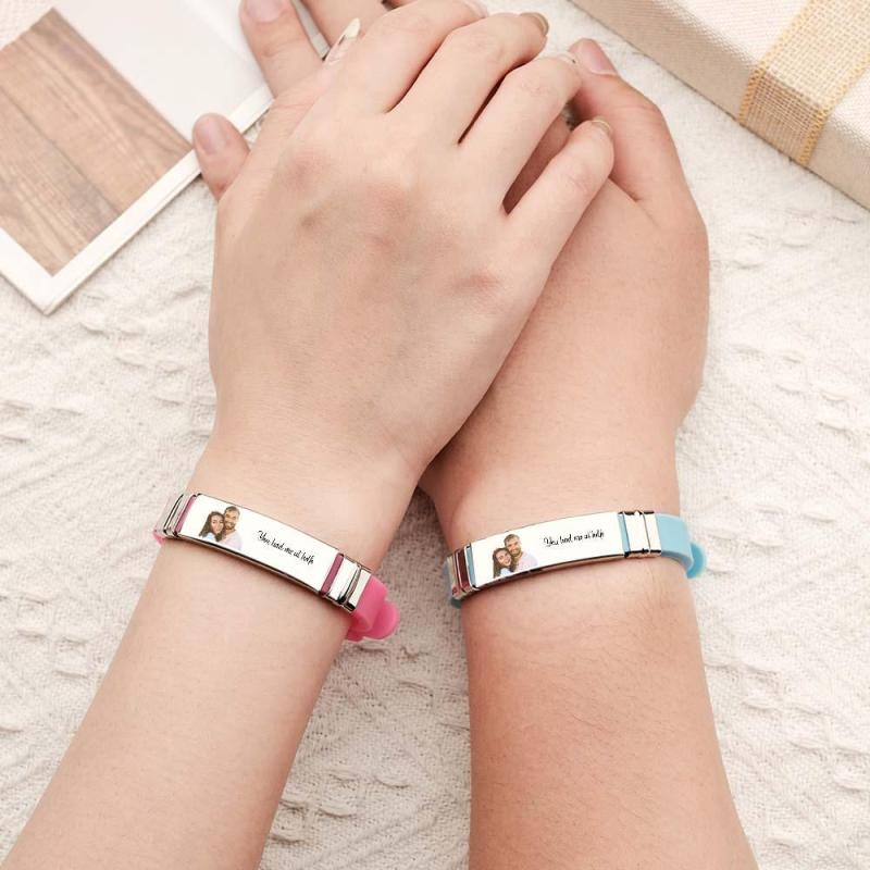 Bracelets Gravés Avec Photo Couleur Personnalisée, Cadeaux De Couple Doux