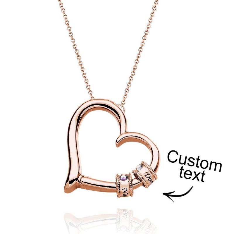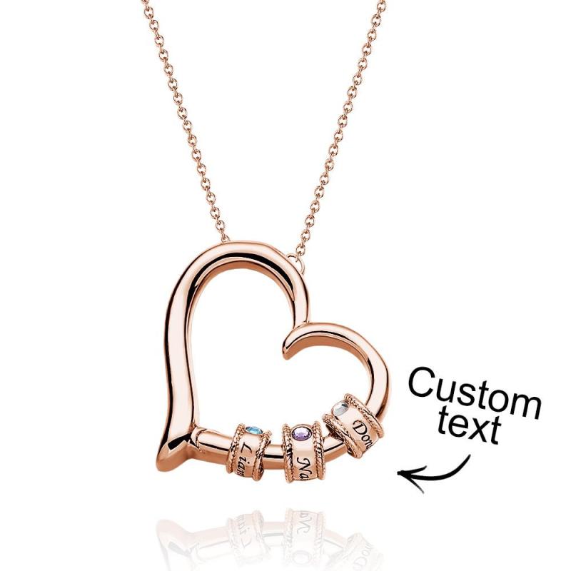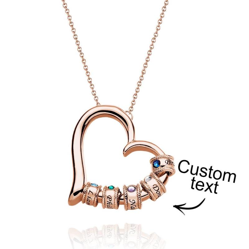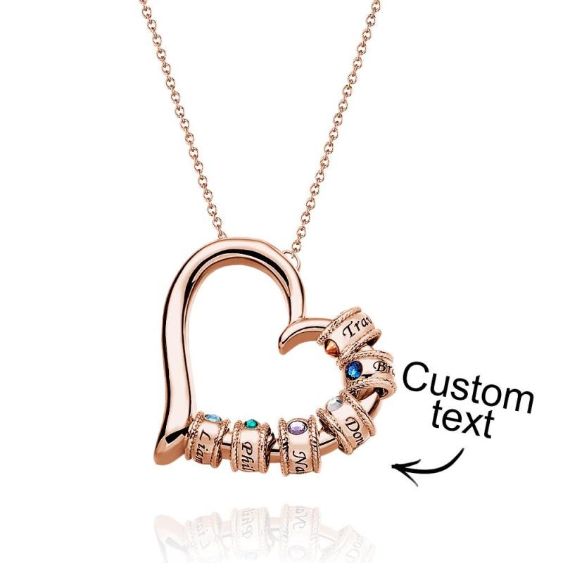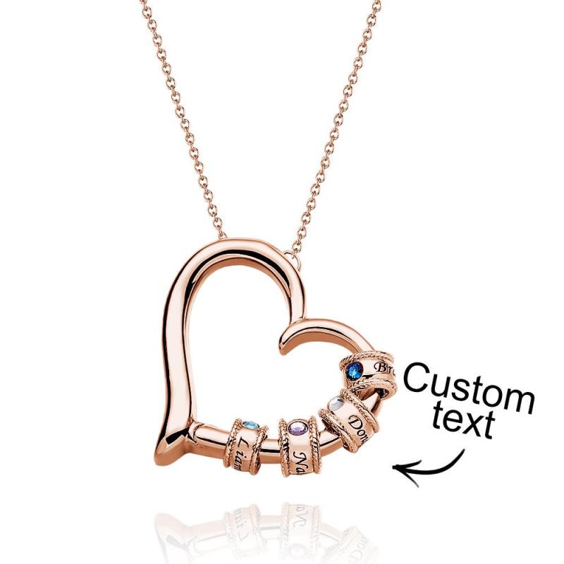Collier Coeur Gravé Personnalisé Avec Perles De Pierre De Naissance, Charmant Collier Pour Maman