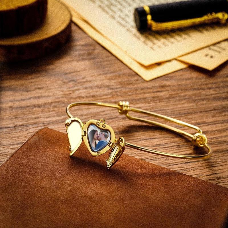 Bracelet personnalisé ce bracelet photo médaillon est simple et élégant, ce qui peut parfaitement montrer le beau poignet de chaque femme. Ce petit bracelet pendentif boîte est livré avec une boîte en forme de cœur pour télécharger des photos de vos proches. En même temps, vous pouvez également saisir quelques mots spéciaux sur la couverture du médaillon en forme de cœur.