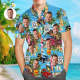 Visage Personnalisé Bleu Hawaii Route 66 Aloha Chemise Hawaïenne Cadeau Pour Lui