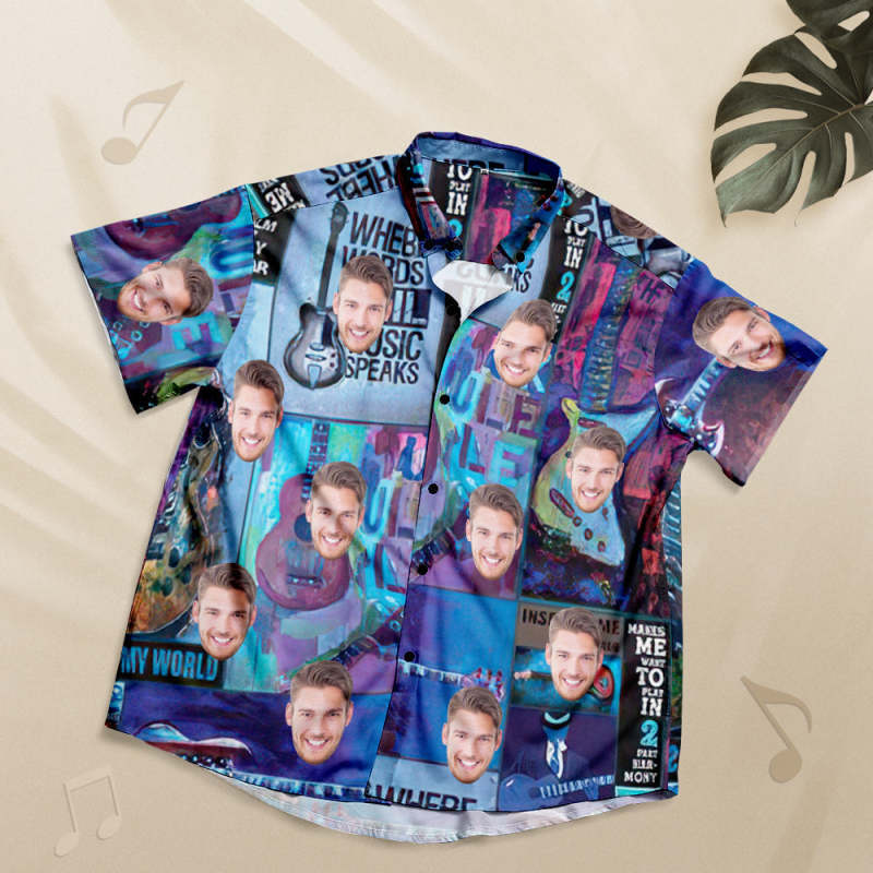 Chemise Hawaïenne Avec Visage Personnalisé, Cadeau De Chemise De Style Musical Personnalisé - Guitare Cool