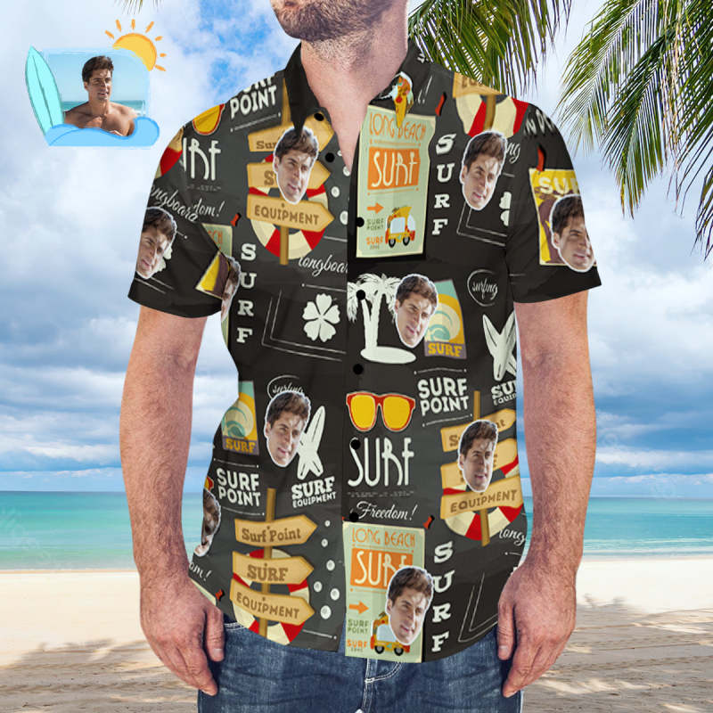Chemise Hawaïenne Visage Personnalisé Style De Surf Personnalisé Chemise De Plage Aloha Noire Cadeau Pour Surfeur Surf Style Hawaïen Surf Style Hawaïen
