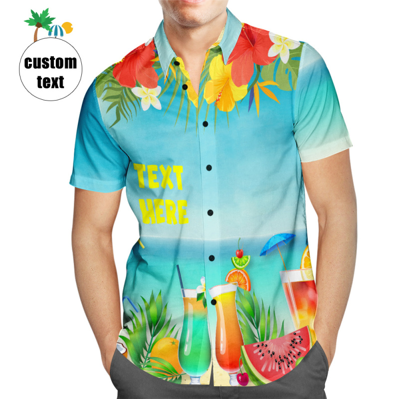 Chemise Hawaïenne Avec Visage Personnalisé, Vacances D'été, Boissons Aux Fruits, Chemise De Plage Aloha Personnalisée Pour Hommes