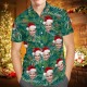 Chemise Hawaïenne De Joyeux Noël Personnalisée Avec Visage Personnalisé, Feuilles Imprimées Partout