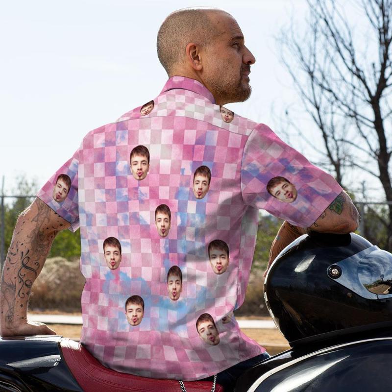 Chemises Hawaïennes Personnalisées, Chemise De Plage Aloha À Carreaux Tie-dye Pour Hommes