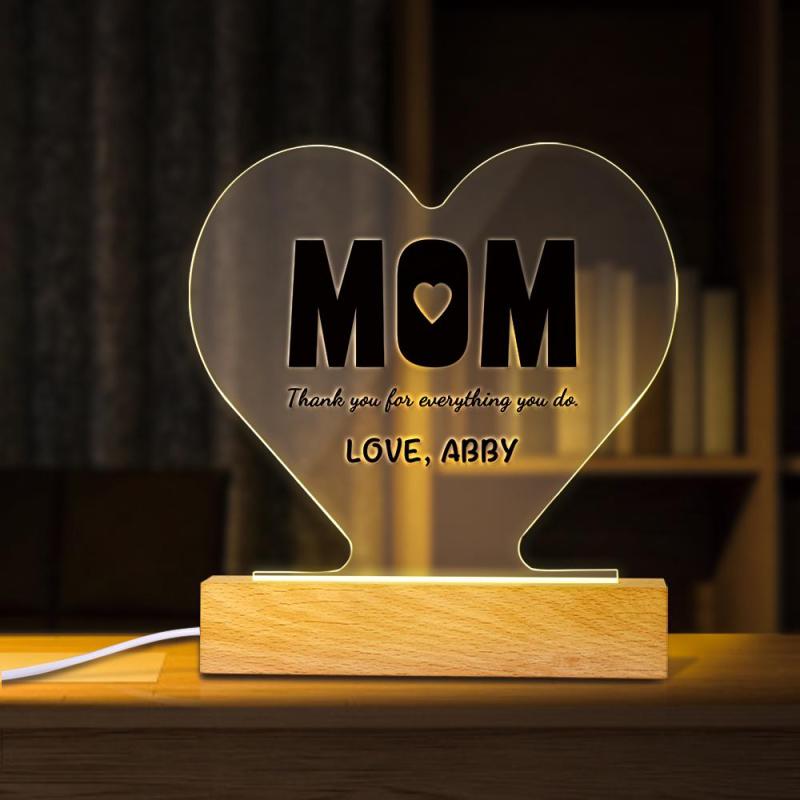 Lampe Veilleuse cœur personnalisée à la douce mémoire de maman