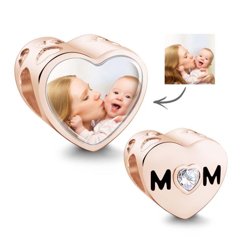 Breloque Personnalisée Avec Photo En Forme De Cœur, Thème Maman, Avec Zircon Blanc, Bijoux En Forme De Cœur D'amour, Cadeaux De Fête Des Mères