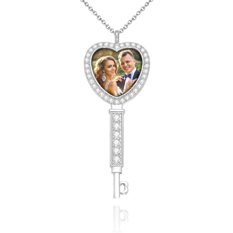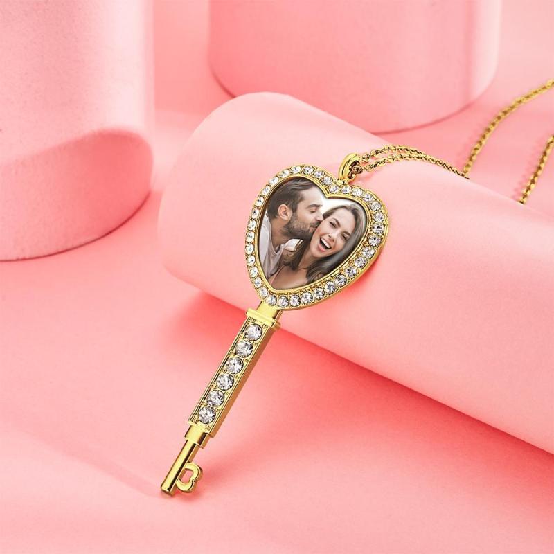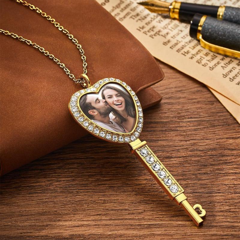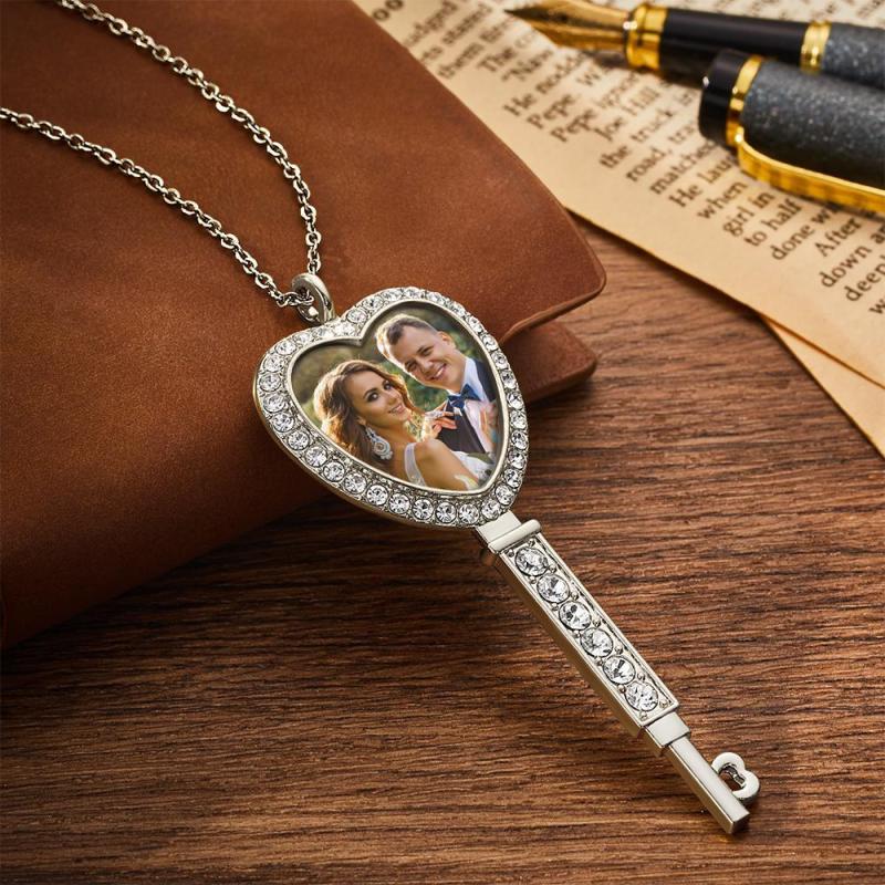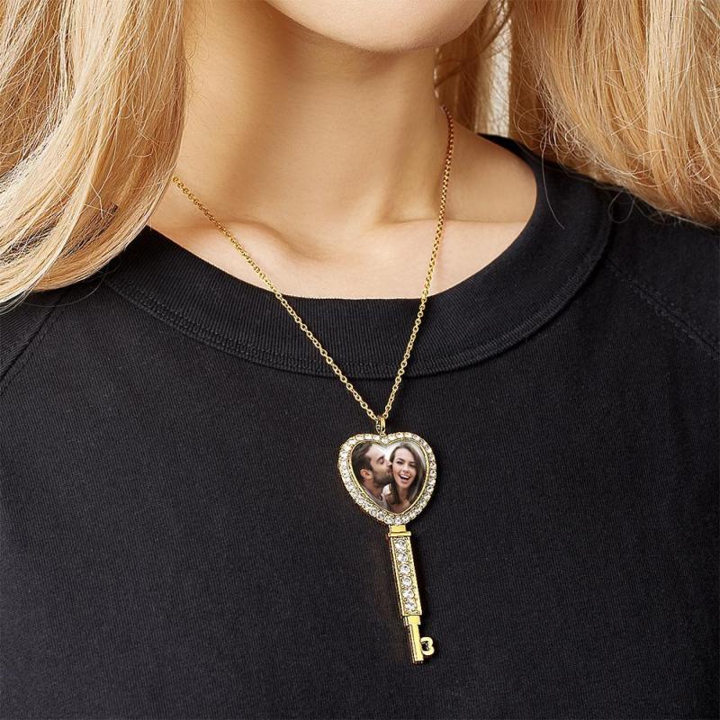 Collier Photo Personnalisé Avec Bordure En Strass Et Pendentif Photo De Couple