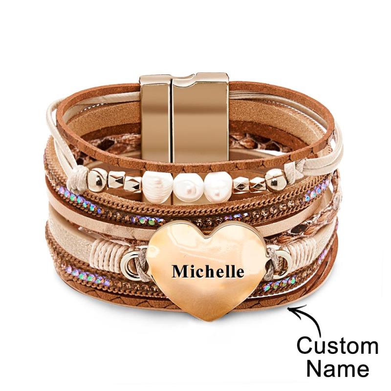 Bracelet Manchette En Cuir Pour Femmes, Nom Personnalisé, Bracelets Enroulés De Perles Baroques Magnifiques