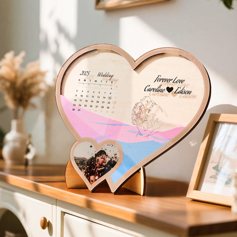 Avec ses motifs de sable fluide et ses touches personnalisées, cette pièce de décoration romantique est parfaite pour les couples.