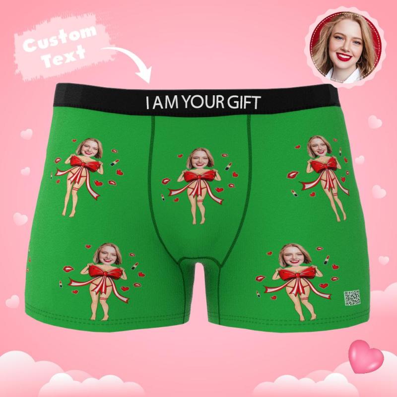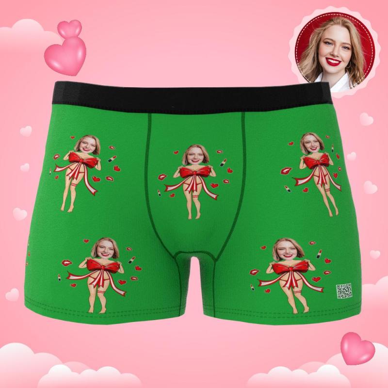 Boxer Photo Personnalisé Noeud Rouge Cadeau Sous-vêtements Sous-vêtements Homme Cadeau Pour Petit Ami Vue Ar