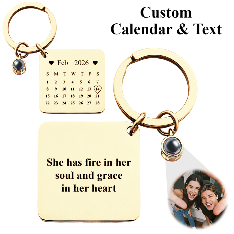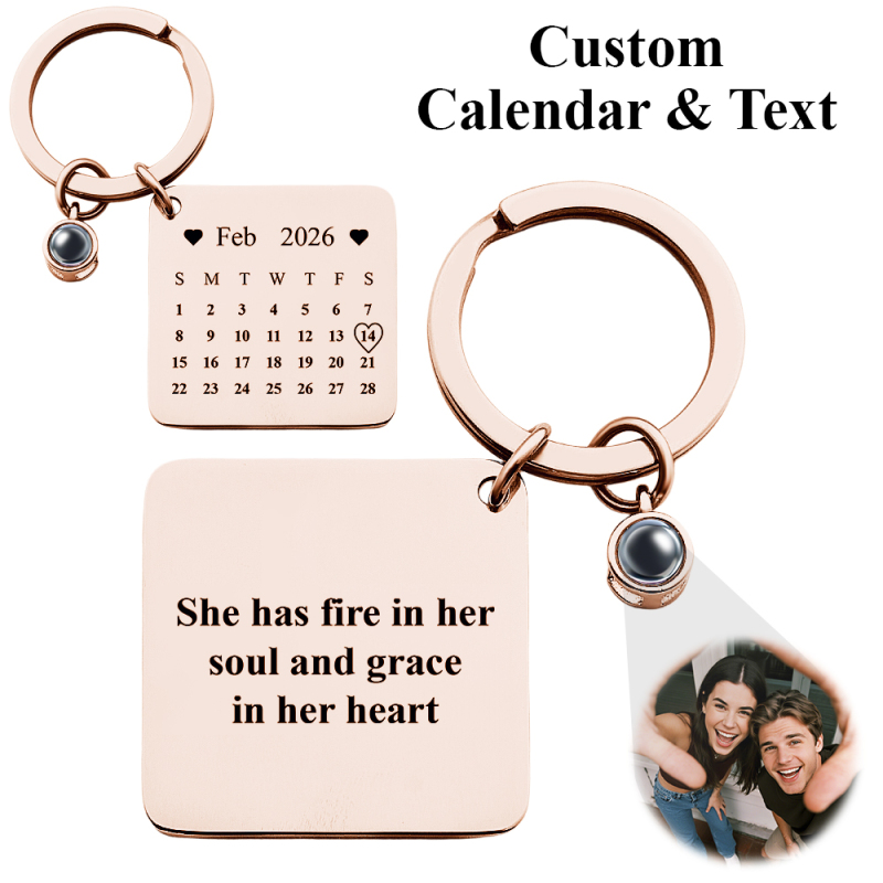 Emportez partout avec vous votre amour et vos souvenirs grâce à ce porte-clés calendrier photo personnalisé - un accessoire commémoratif carré, le cadeau de Noël idéal pour les couples ! Son design carré élégant accueille une photo personnalisée (portrait de couple, cliché de voyage ou photo d'anniversaire) qui se projette clairement lorsqu'elle est éclairée, et est associée à un calendrier discret pour marquer les dates importantes.