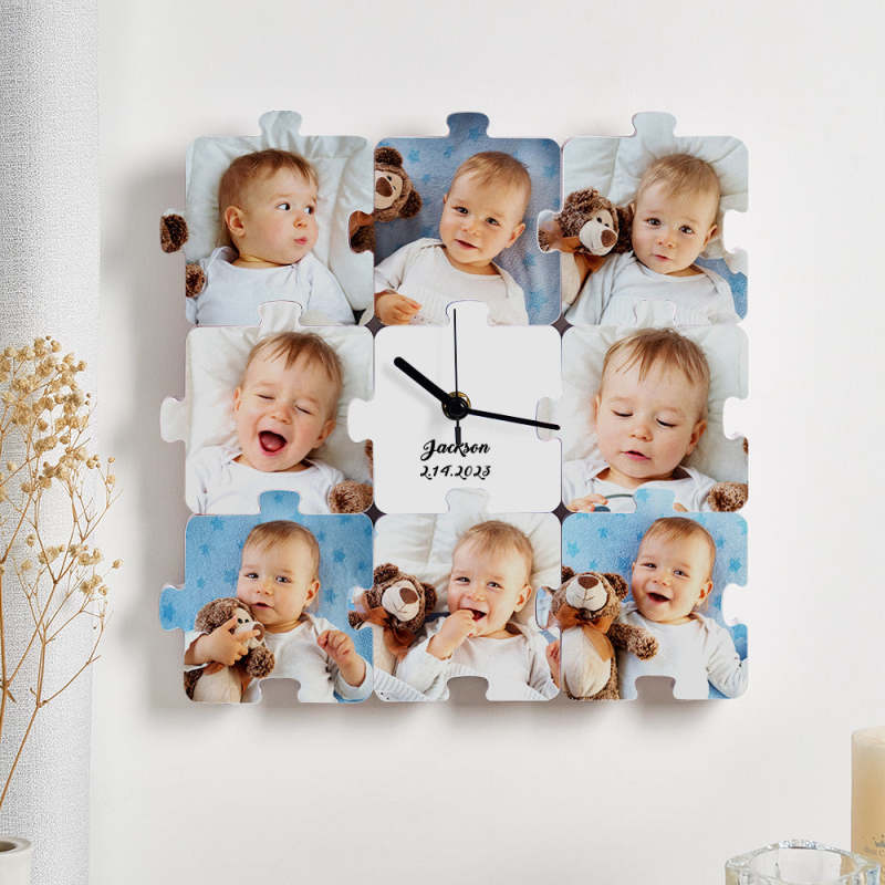 Créez un cadeau personnalisé et unique avec notre horloge photo personnalisée. Choisissez 8 de vos photos préférées pour créer une pièce de décoration amusante et significative, parfaite pour la Saint-Valentin, la fête des mères, la fête des pères ou un cadeau d'anniversaire. Une excellente façon de mettre en valeur votre amour et vos souvenirs.
