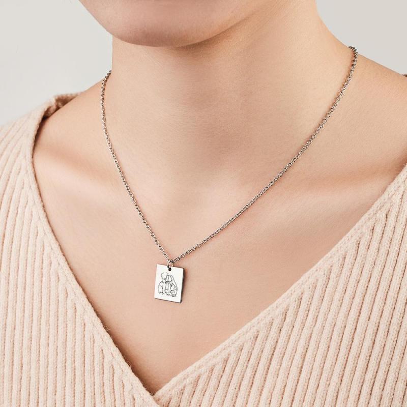 Présentation de notre collier rectangulaire personnalisé avec photo gravée, un souvenir intemporel qui transforme vos photos précieuses en œuvres d'art à porter.